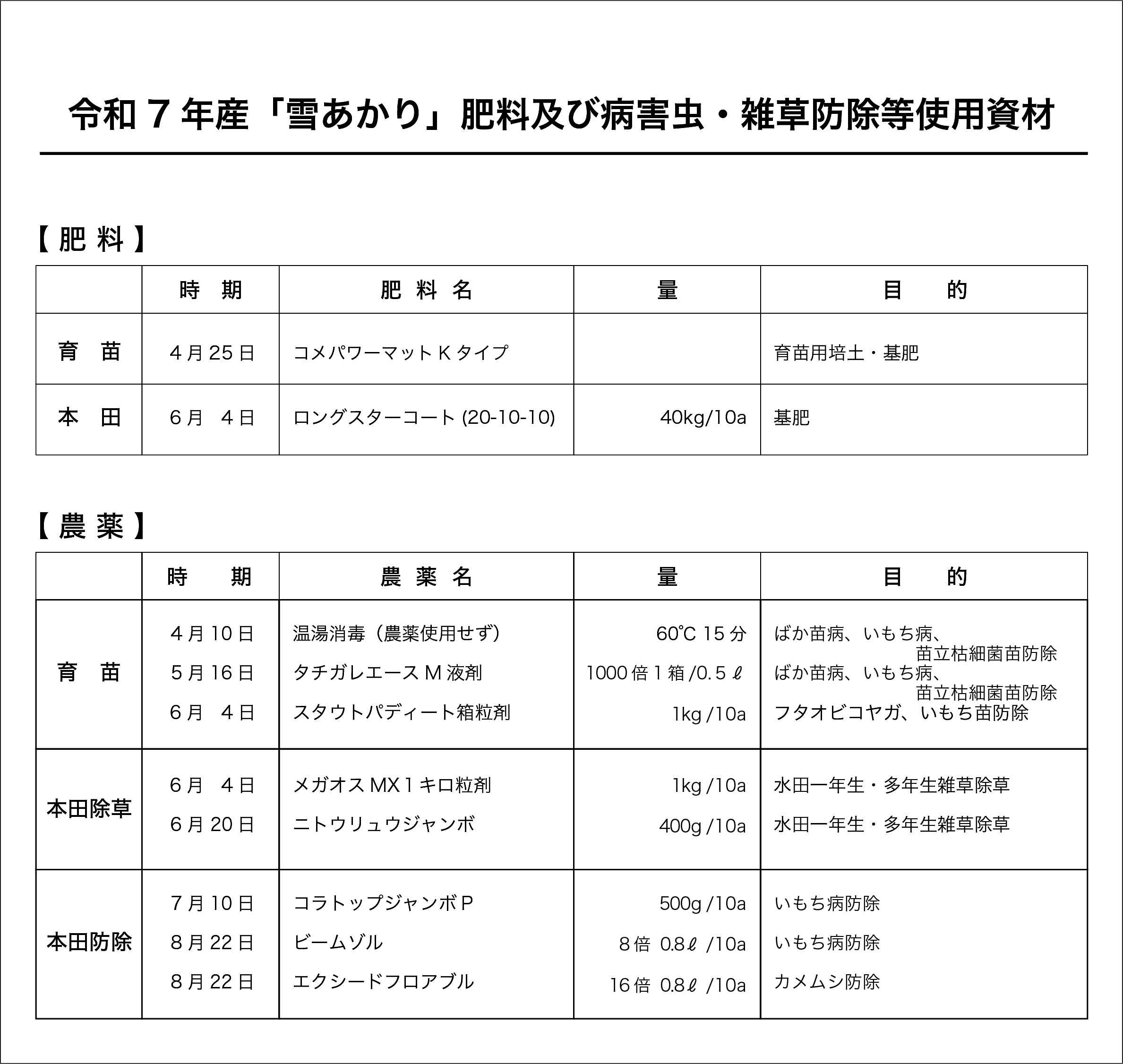 令和7年産「雪あかり」肥料及び病害虫・雑草防除用資材 投稿日: 2025年11月14日2025年11月14日 投稿者: heartlandfarm 令和7年産のお米作りの作業風景や作業内容など随時アップしています こちらからご覧ください